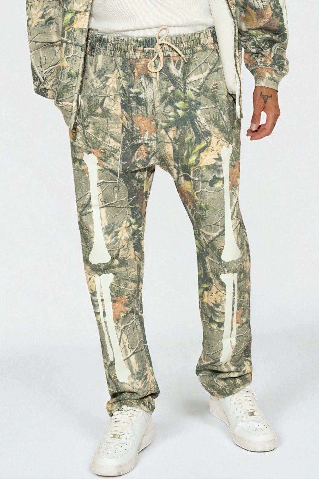 SKELETON GLOW IN THE DARK WIDE LEG SWEATS - VINTAGE WOOD CAMO
